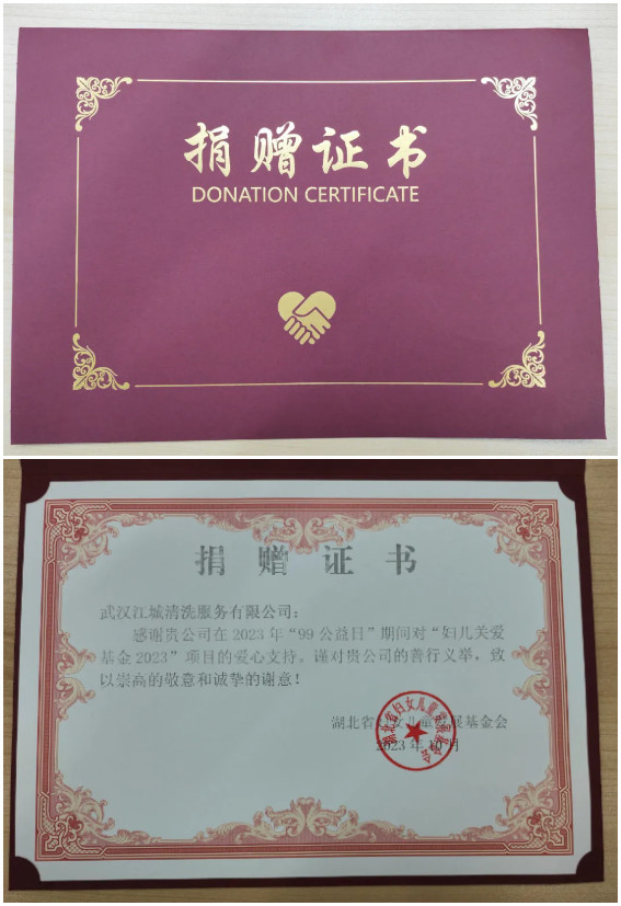 江城清洗,一家植根清潔行業(yè)27載的公司,一家歷經(jīng)兩代女性*,初心不變的公司,為了支持湖北省婦女兒童公益事業(yè),于2023年“99公益日”期間向江漢區(qū)婦兒關(guān)愛基金捐贈了善款。這一善舉旨在資助武漢市江漢區(qū)婦聯(lián)開展婦女兒童關(guān)愛活動,為社會婦女和兒童提供更多關(guān)愛與幫助。