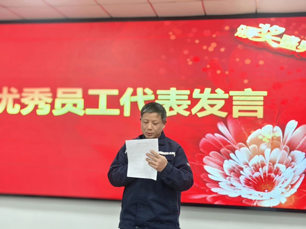 優(yōu)秀員工代表劉信立登臺(tái)分享了獲獎(jiǎng)感言,質(zhì)樸的話(huà)語(yǔ)傳遞著對(duì)崗位的熱愛(ài)與對(duì)江城清洗公司的感恩,也為在場(chǎng)同仁帶來(lái)了奮進(jìn)的力量。