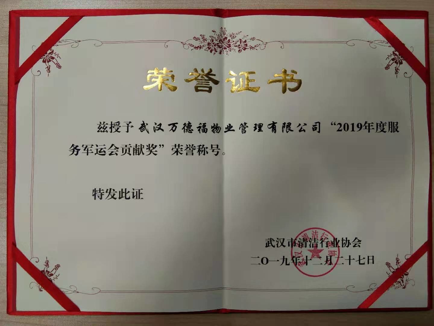 2019年度服務(wù)軍運(yùn)會(huì)貢獻(xiàn)獎(jiǎng)