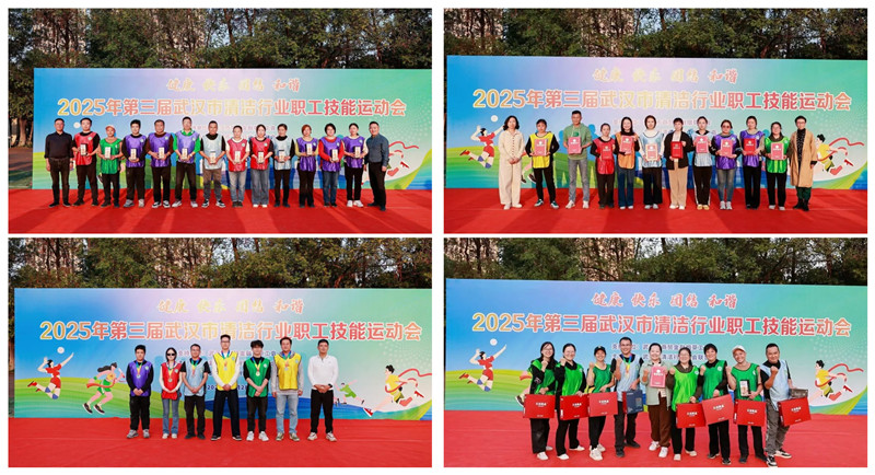 2025年10月28日下午,武漢市清潔行業(yè)職工技能運(yùn)動(dòng)會(huì)成功舉辦。全市清潔行業(yè)近40家單位的130余名職工齊聚賽場(chǎng),武漢江城清洗公司積極組織8名員工組成參賽隊(duì)伍參與其中,大家在賽場(chǎng)上活力迸發(fā),既展現(xiàn)了個(gè)人的運(yùn)動(dòng)風(fēng)采,又體現(xiàn)出團(tuán)隊(duì)協(xié)作的力量,在汗水與歡笑中收獲榮譽(yù)的同時(shí),也收獲了滿滿歡樂。武漢市總工會(huì)、武漢市工商聯(lián)、武漢市總工會(huì)商貿(mào)金融煙草工會(huì)、武漢市家政服務(wù)行業(yè)工會(huì)、武漢市清潔行業(yè)協(xié)會(huì)等相關(guān)單位領(lǐng)導(dǎo)出席活動(dòng)。