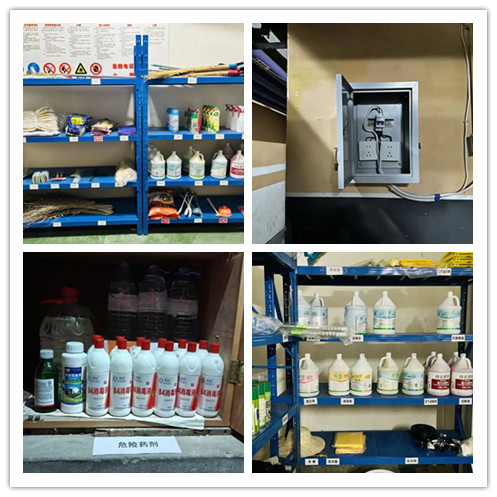 檢查組嚴(yán)格秉持全覆蓋、零容忍原則,深入各項(xiàng)目倉(cāng)庫(kù)及配套區(qū)域開(kāi)展拉網(wǎng)式、無(wú)死角an全排查。本次檢查聚焦藥劑an全管理、用電an全兩大重點(diǎn),嚴(yán)格核查藥劑規(guī)范存放、上鎖管控與專(zhuān)人管理落實(shí)情況;同時(shí)對(duì)庫(kù)房、休息室等關(guān)鍵區(qū)域細(xì)致巡查,全面檢查電路運(yùn)行及線路鋪設(shè)合規(guī)情況。